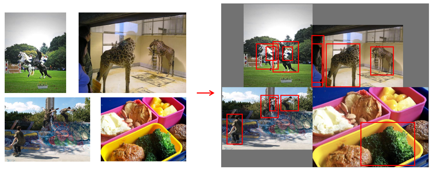 (2)减少GPU显存:直接计算4张图片的数据,使得Mini-batch大小并不需要很大就可以达到比较好的效果。