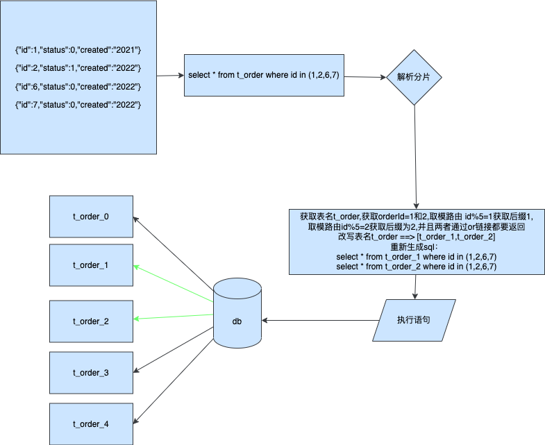 为了得到正确的结果需要将每条sql进行改写分别发送到对应的表中,然后将各自表的执行结果进行聚合返回最终受影响行数
