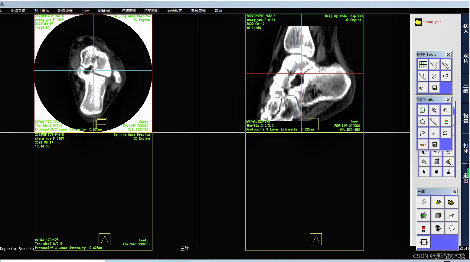 3.三维模式:可以对图像进行三维后处理,如MPR、MIP、SSD等处理。