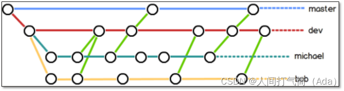 如上所述,作为一个分布式的版本控制系统,在 Git 中并不存在主库这样的概念。每一 份复制出的库都可以独立使用,任何两个库之间的不一致之处都可以进行合并。