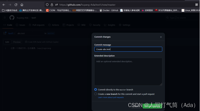 [root@gitserver hy]# git remote add origin git@github.com:huyang-Ada/test1.git