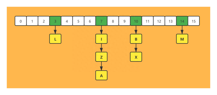 hash(字典)的实现与Java中的HashMap(JDK1.7)的结构也是一致的,它的数据结构也是数组+链表组成的二维结构,节点元素散列在数组上,如果发生hash碰撞则使用链表串联在数组节点上。