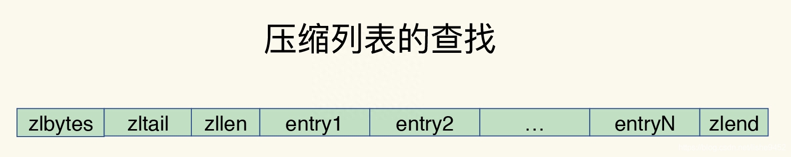 我们要查找定位第一个元素和最后一个元素,可以通过表头三个字段的长度直接定位,复杂度是 O(1)。而查找其他元素时,就没有这么高效了,只能逐个查找,此时的复杂度就是 O(N) 了。