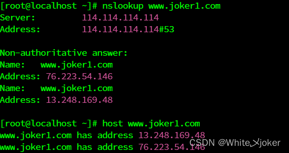 - [root@localhost ~]# dig 192.168.149.128 www.joker1.com