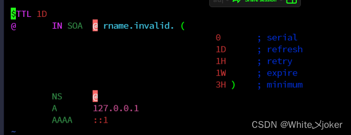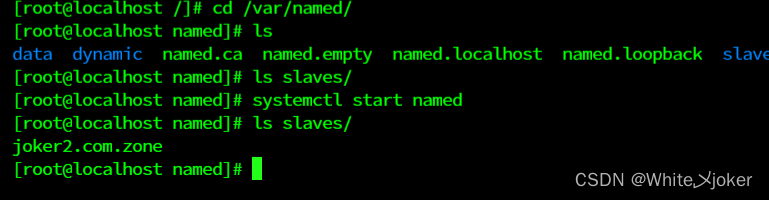 - [root@localhost named]# cp -a named.localhost joker2.com.zone