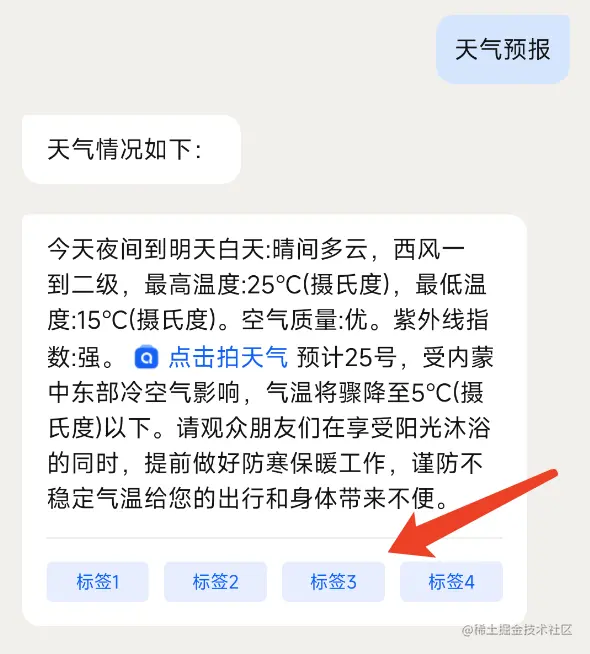 list.add(MessageModel(content = "天气预报", type = ChatVHolderFactory.TYPE_ASK_TXT))