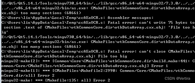 Qt5 在网上用“-Wa,-mbig-obj” 不能解决,最后通过“QMAKE_CXXFLAGS += -Ofast -flto”解决问题。