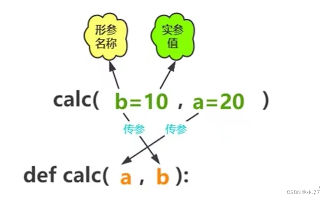将10传给形参a,20传给形参b关键字实参