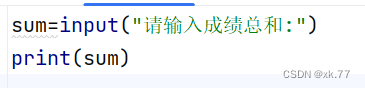 上面代码意思是从控制台输入一个值,再将这个值赋值给变量,其中input 括号里的文字提示在没有的情况下,效果是一样的,但有问题提示就比较人性化一点。