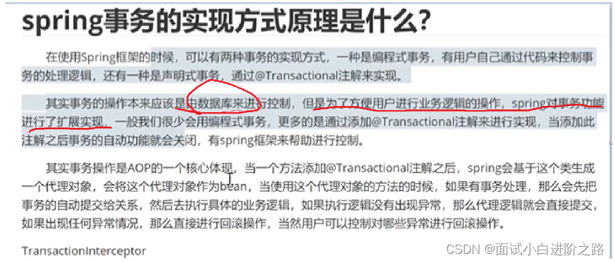 .spring支持编程式事务和声明式事务是实现事务管理的两种主要方式。(重点)**