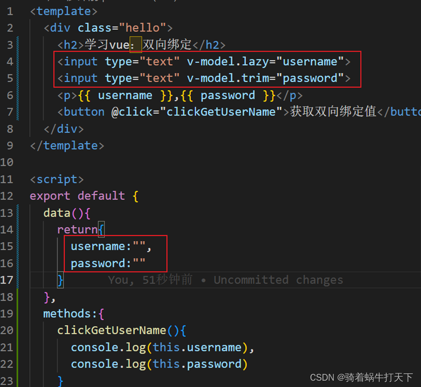- //调用data中字段用this