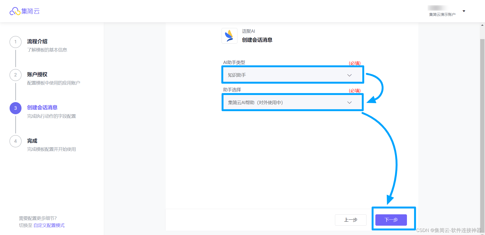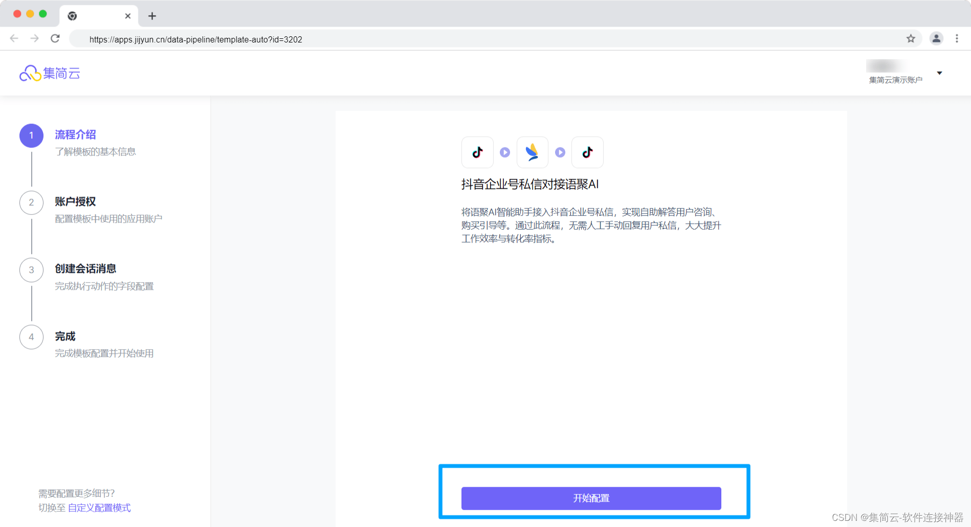 1 点击模板链接,开始配置流程:抖音企业号私信对接语聚AI
