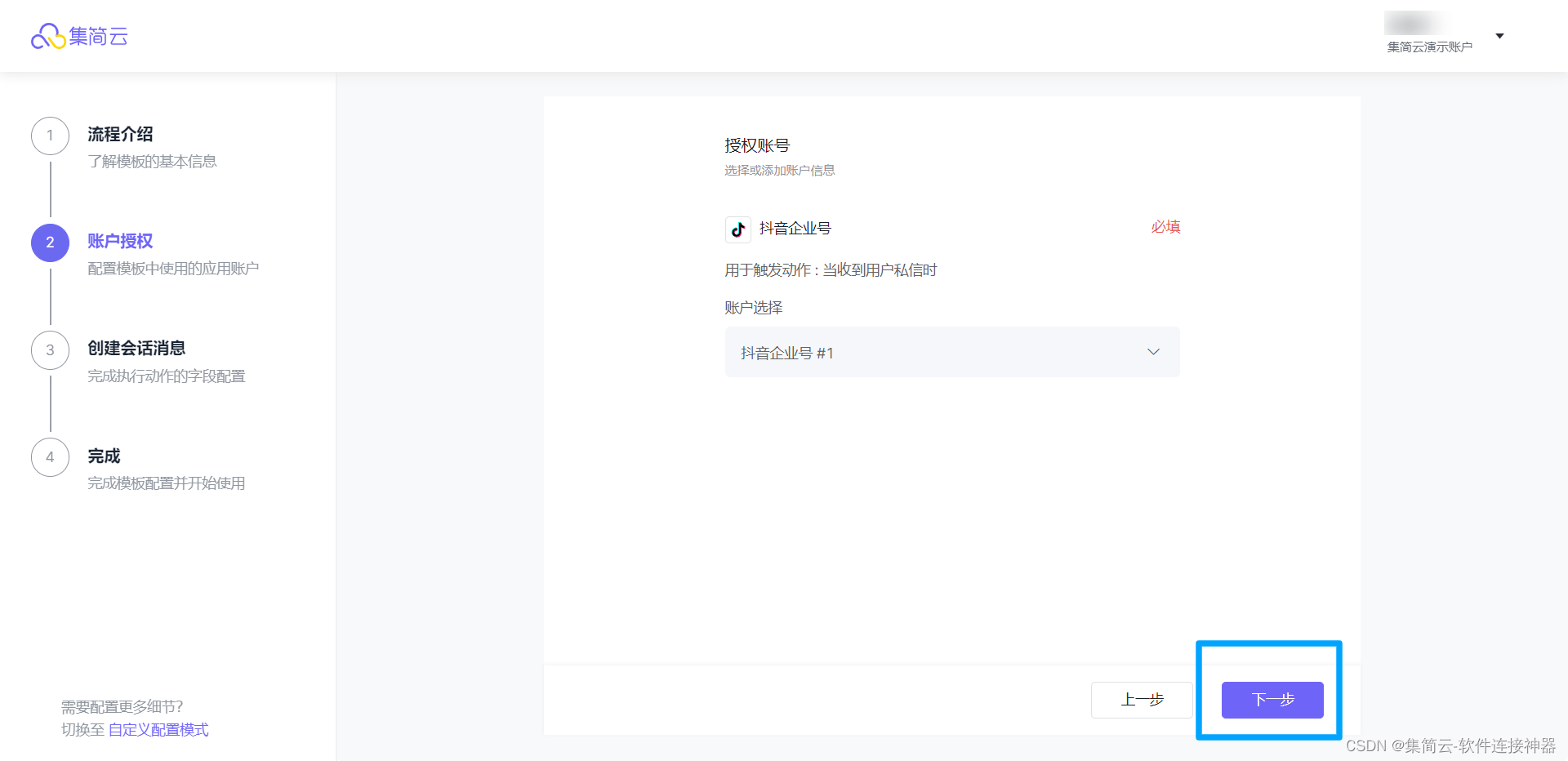 2 选择或新增授权一个抖音企业号账户,进入下一步。