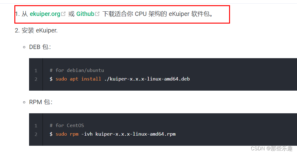 在官网下载安装包,下载地址:安装 | eKuiper 文档