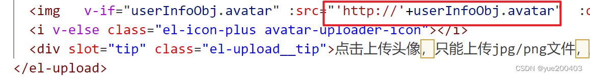 - <div slot="tip" class="el-upload__tip">点击上传头像,只能上传jpg/png文件,且不超过1mbdiv>