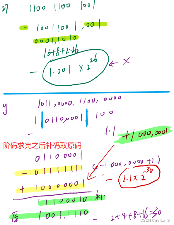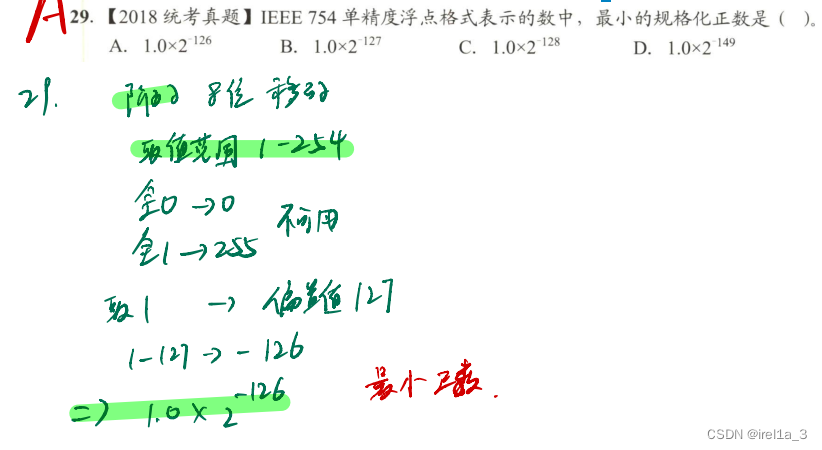 偏置值127,取值范围1-254,负值要补码取原码)+23(隐1.原码)