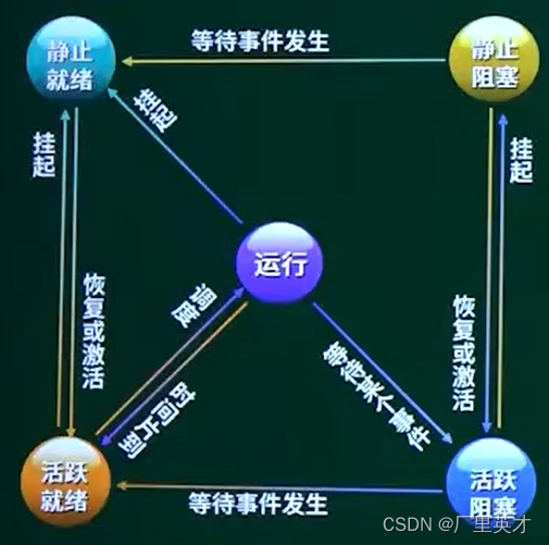 就绪:一个进程获得了除CPU外的一切所需资源,一旦得到处理机即可运行