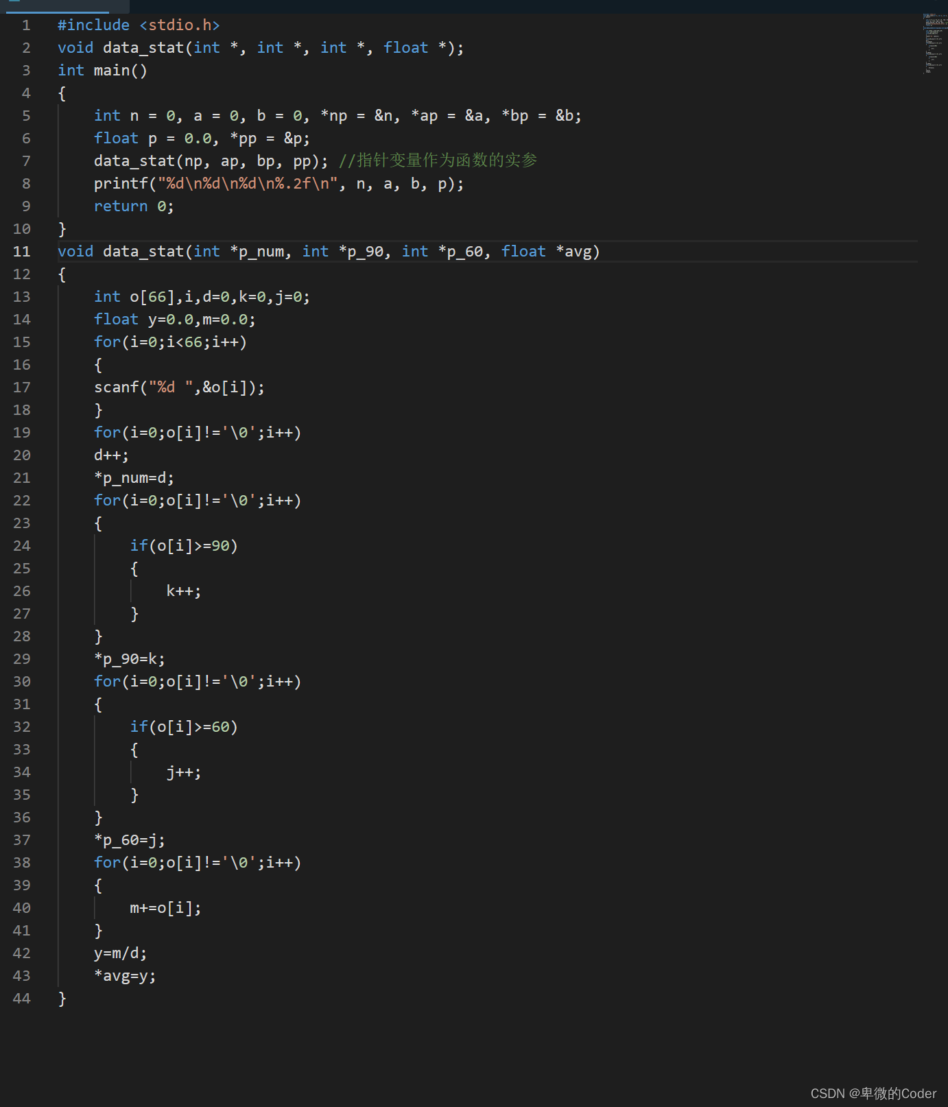 请设计一个函数,以指针变量作为函数的参数,从标准输入上读入数量不定的成绩。统计全班成绩的总数量、90 分及以上成绩的个数、60 分及以上成绩的个数和全班成绩的平均分,并返回这四个数给主程序。编写主程序调用此函数完成统计功能。