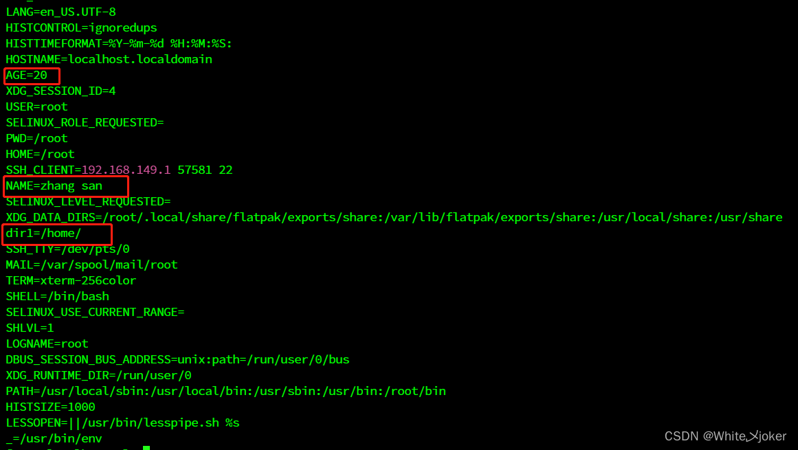 - [root@localhost ~]# declare -x AGE=20