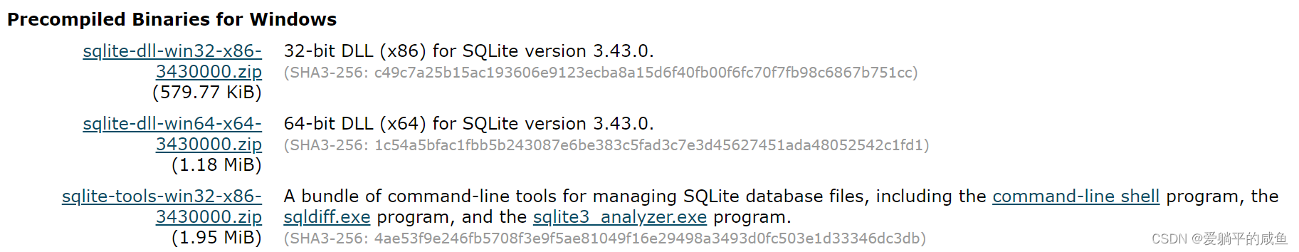 SQLite Download Page这是sqlite的官网下载地址,需要下载三个文件: