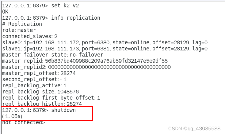 1. 我们自己手动关闭6379服务器,模拟master挂了