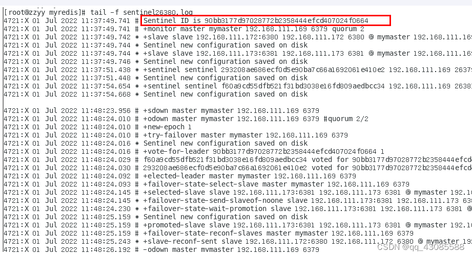 1. 由于机器硬件关系,我们的3个哨兵都同时配置进192.168.111.169同一台机器