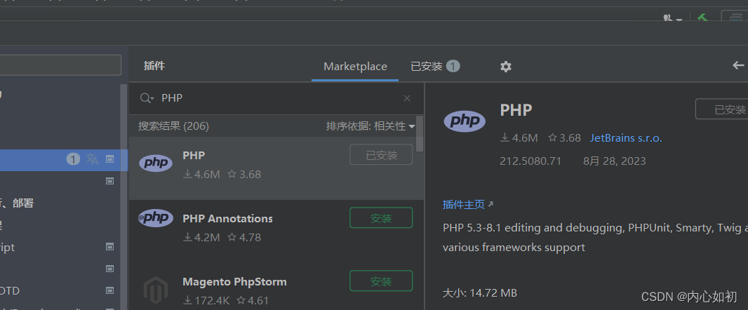 我们在IJ中下载PHP插件,这个插件不是IJ中自带需要,自行搜索然后进行下载.