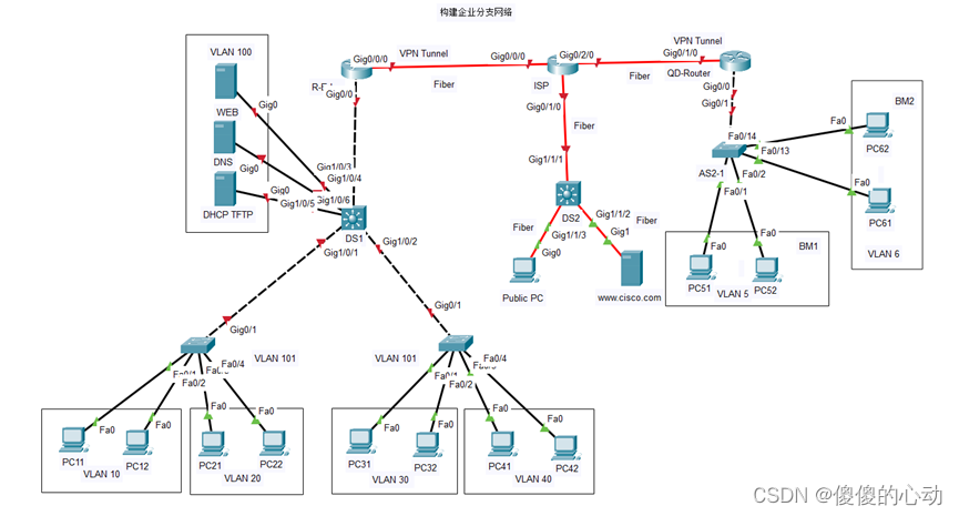 本论文以学校企业网络互连互通为项目背景,网络规模较小,本论文案例中应用的网络技术相对简单,读者容易上手。本论文案例中路由技术包括静态路由、单臂路由以及RIPv2等相关内容;交换技术包括VLAN、Trunk以及SVI (交换机虚拟接口)配置等相关内容;网络安全及网络管理技术包括特权密码、口令加密、Telnet (远程终端协议)以及SSH (安全外壳协议) 等相关内容;网络服务包括WEB、DNS、DHCP以及TFTP等相关内容;WAN技术包括NAT (网络地址转换)和GREVPN等相关内容。通过学习本论文案例,可培养广大读者的网络规划设计与实施能力,同时,使其对网络工程师的工作流程有一个初步认识。