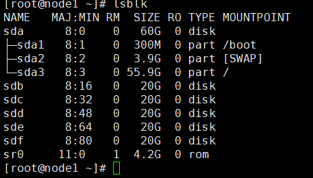 在每个Node节点(服务器)新建四个盘并重启服务器