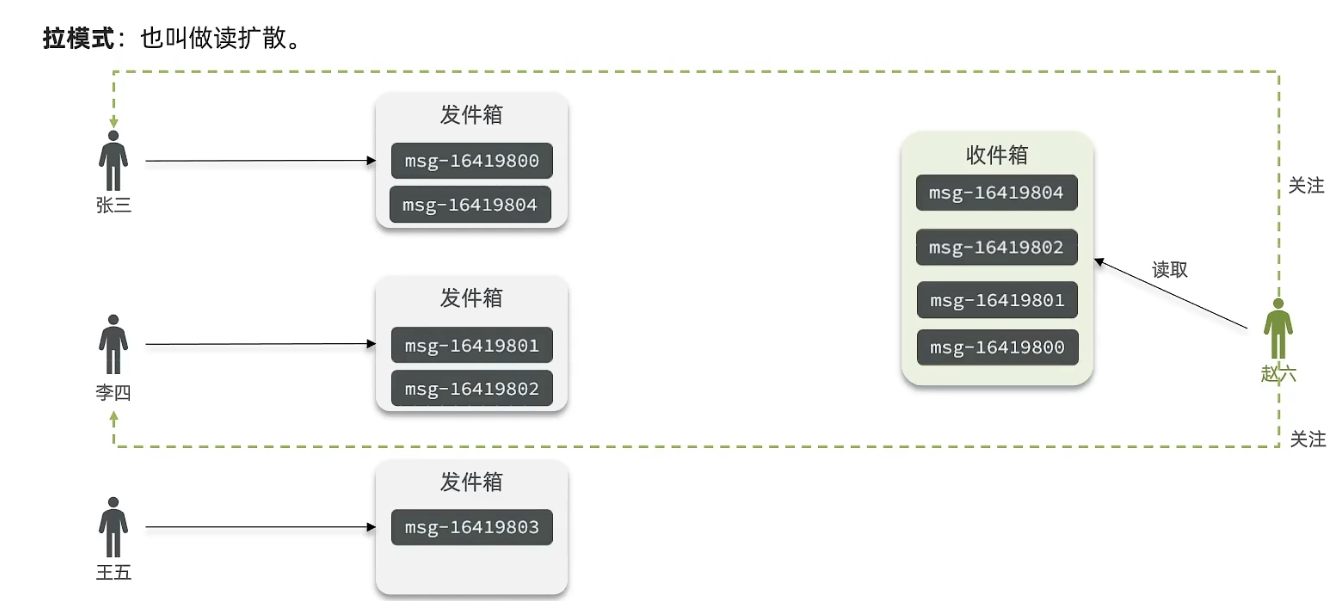 对于大v:活跃粉丝直接给他推送,不活跃粉丝放在收件箱,等他要读的时候推