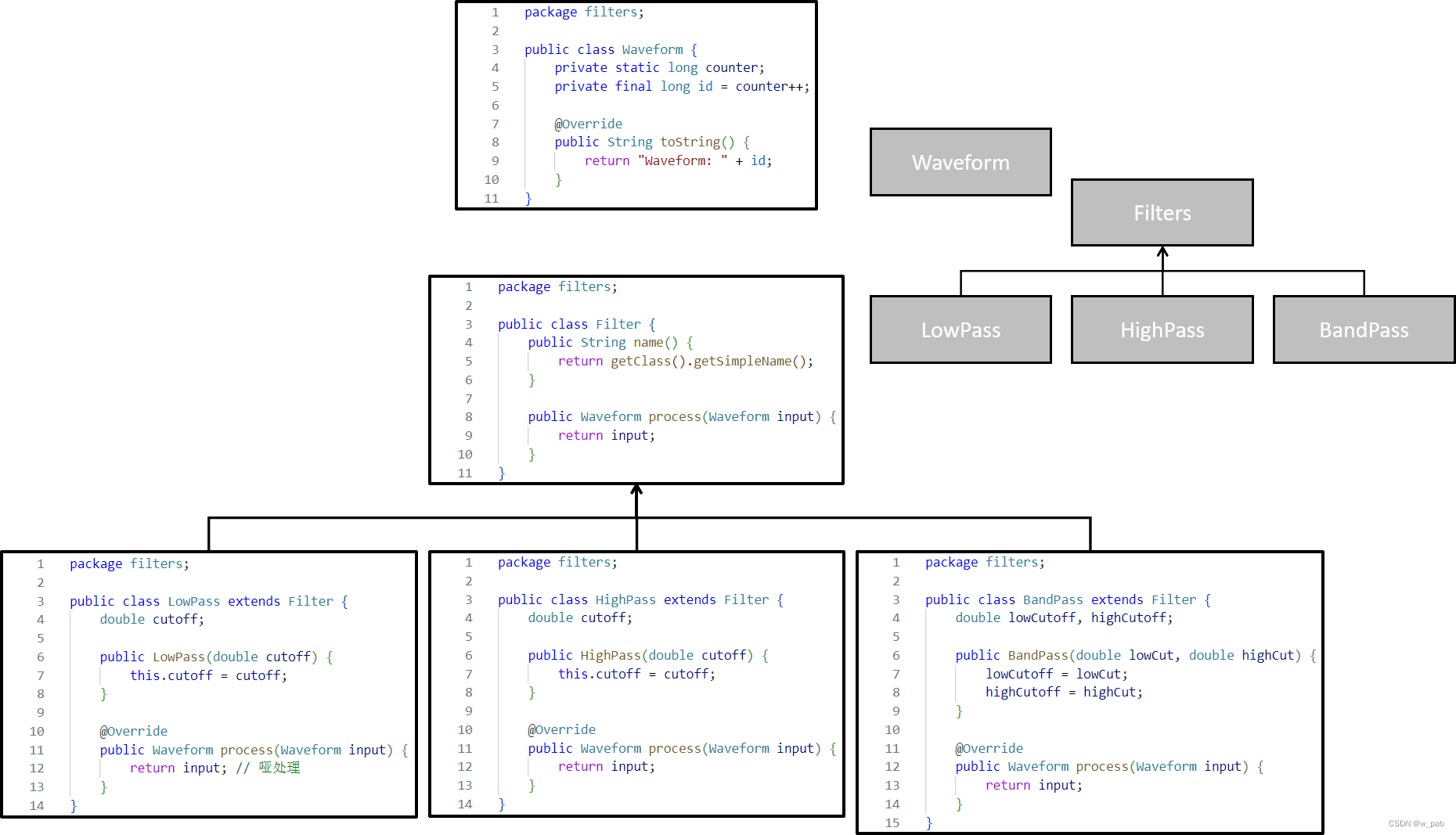 - public Waveform process(Object input) { // 返回类型是协变的,这允许我们产生一个Waveform