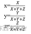 形成任何特定颜色所需的红、绿、蓝颜色分量称为三色值,可以分别用X、Y和Z分别表示。 此时,一种颜色可以由三色值系数定义为: