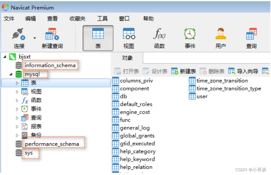 可以看到,和在cmd下执行show databases,use mysql,show tables做的任务其实是一样的,但是提供了图形化的更方便的操作页面。🌾