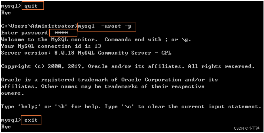 退出数据库可以使用quit或者exit或者\q命令完成。