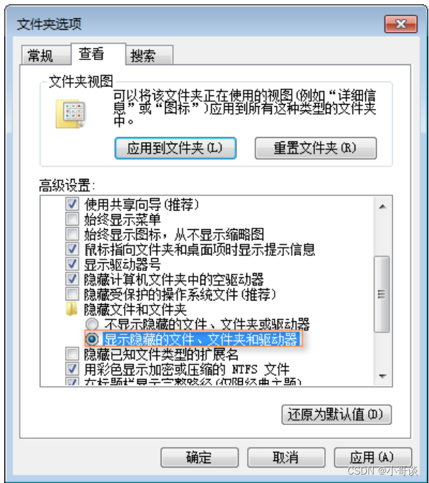 ProgramData是一个隐藏文件夹,需要通过下面的方式来显示隐藏的文件夹才能看到。