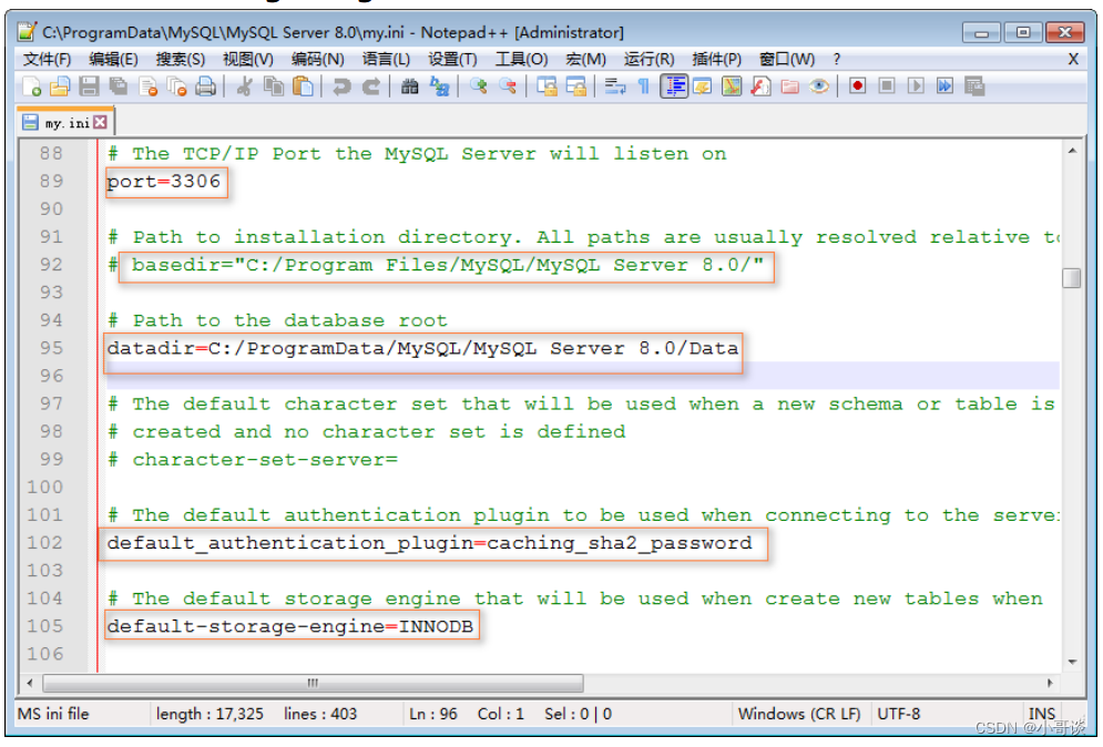 🍀(4)在MySQL数据文件夹中有MySQL的配置文件:my.ini。它是MySQL数据库中使用的配置文件,修改这个文件可以达到更新配置的目的。