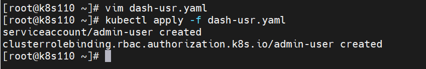 - #创建访问账号,准备一个yaml文件; vi dash.yaml
