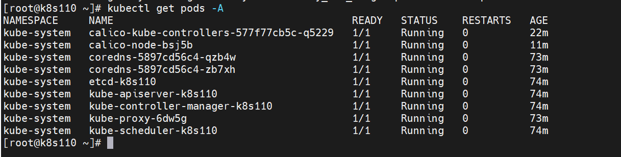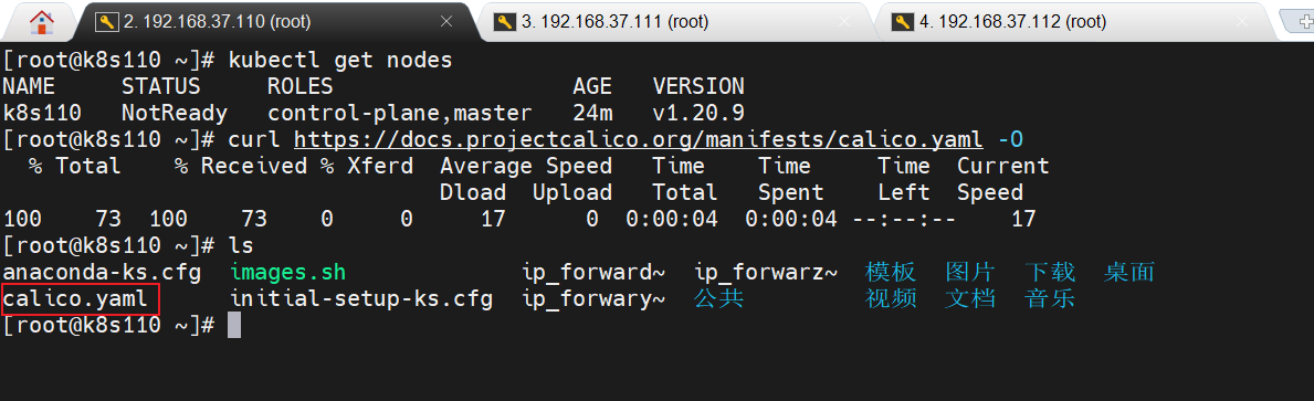 2.然后只在k8s110这台服务器上执行主节点初始化过程: