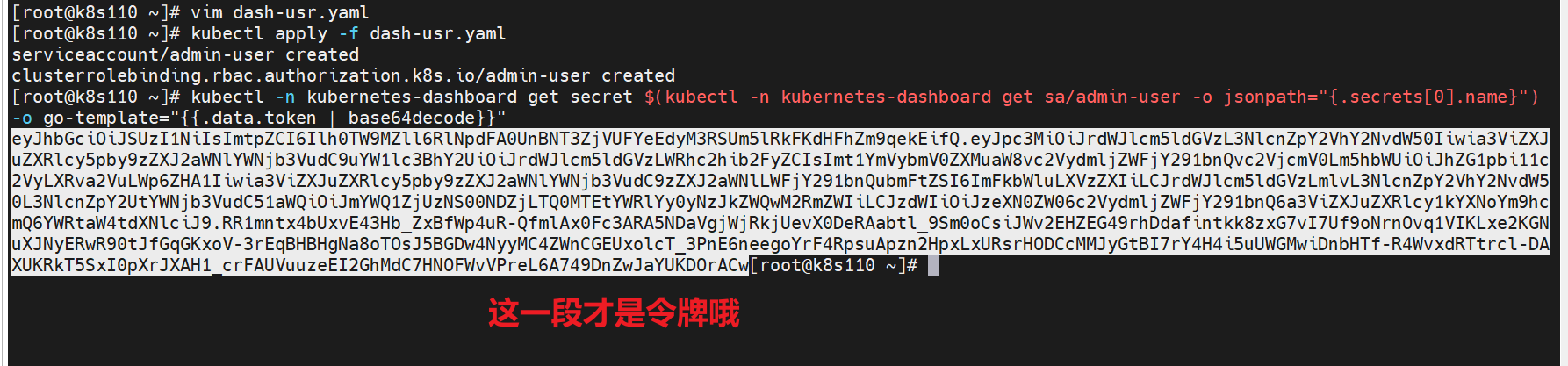 这个可视化界面是通过令牌登录的,我们可以通过如下命令生成访问令牌: