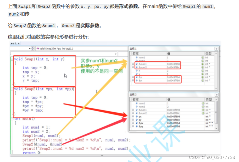 - 这种传参方式可以让函数和函数外边的变量建立起真正的联系,也就是函数内部可以直接操 作函数外部的变量。