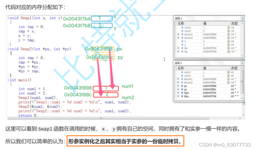 函数的形参和实参分别占有不同内存块,对形参的修改不会影响实参