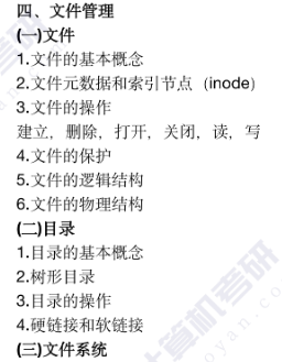 目录,根目录文件很重要,开机时好像就到内存中了,目录的结构记不清怎么分的了,一开始是不允许重名,然后是根目录下不同用户才允许重名,也就是树形结构,最后还有个图型结构应该不考。目录的操作有啥啊,这个是真不知道了,更改还是添加目录或是添加普通文件把。软链接就是快捷方式,不会改变计数指针,硬链接当计数指针为0时才能删除。