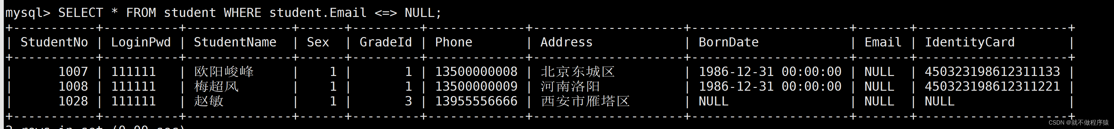 4.2 查询邮箱为空的学员信息.(通过<=>关键字实施)