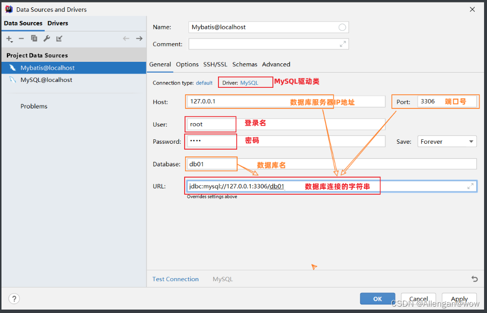 基于上述分析,在Mybatis中要连接数据库,同样也需要以上4个参数配置。