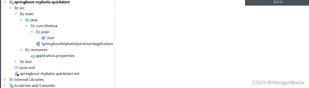 项目工程创建完成后,自动在pom.xml文件中,导入Mybatis依赖和MySQL驱动依赖