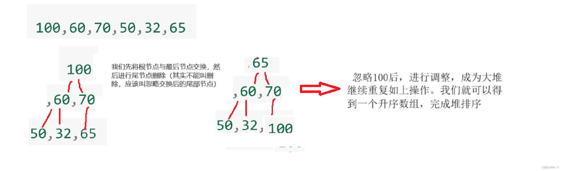 降序建小堆的原理也是删除思想,可以参考升序建大堆。
