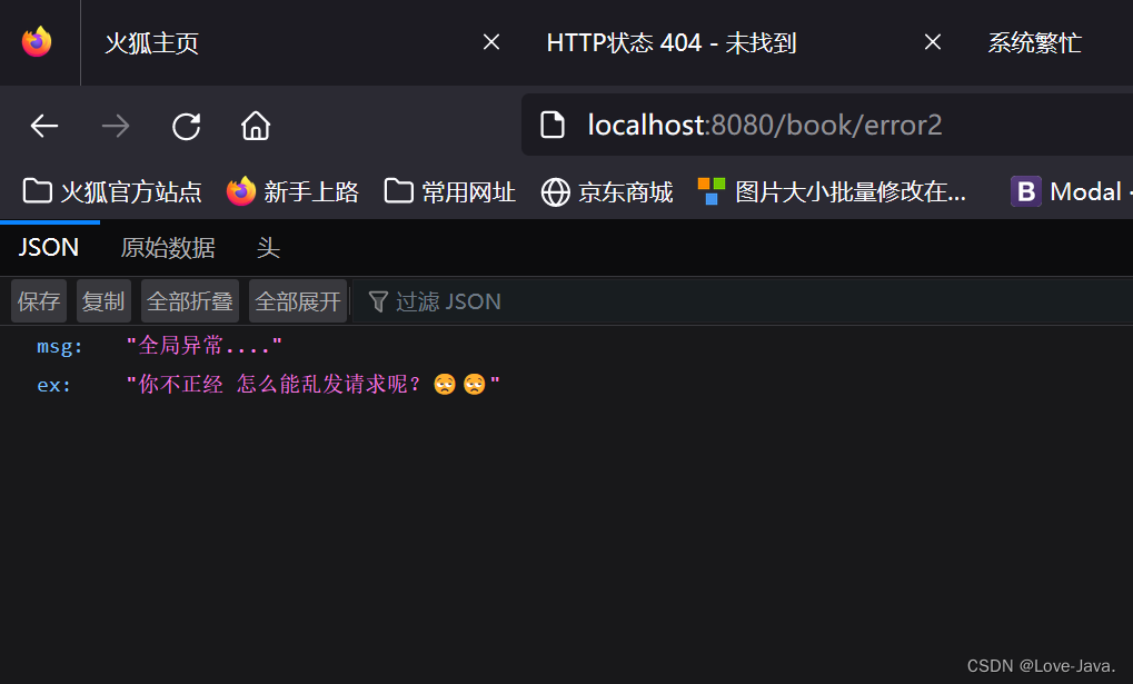 在JsonController中再创建一个error2方法
