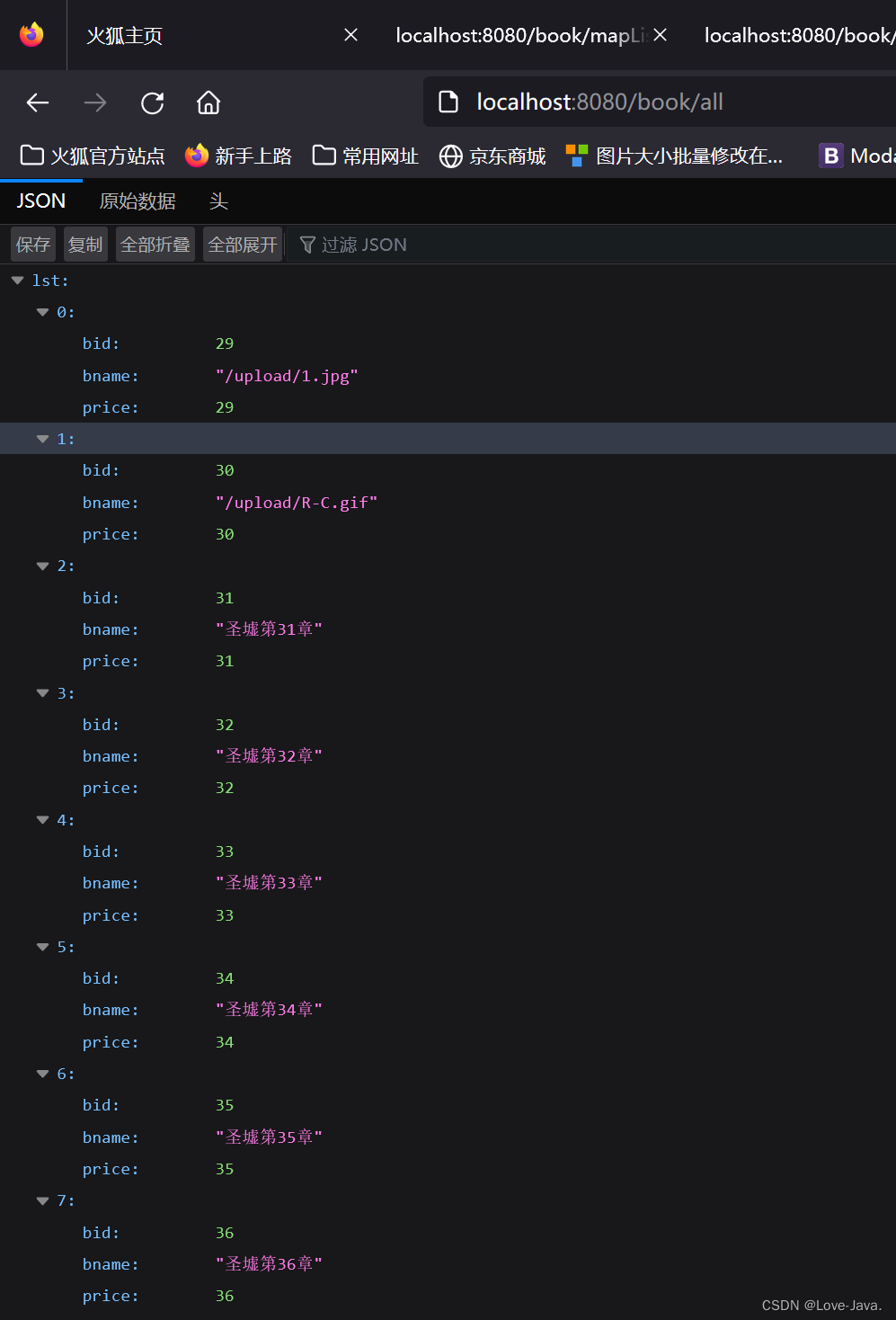 注意:因为在JsonController已经给实体为null值了接受的Bname值为空值,所以报出空指针异常