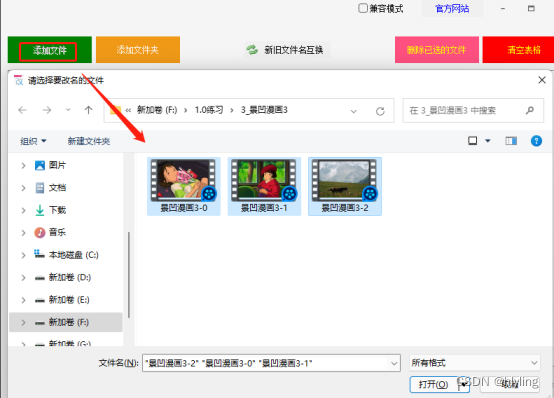 第二步,在进入板块之后,我们要点击“添加文件”,在弹出来的文件夹里,将带有后缀数字的文件选中并一一导入。